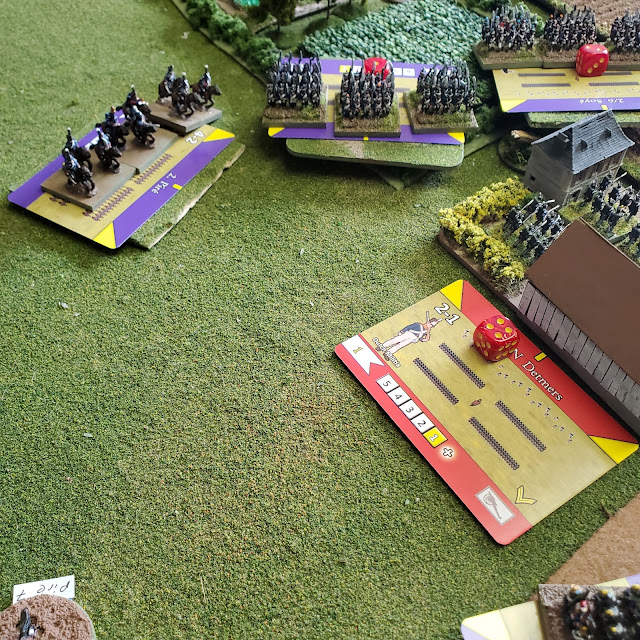 Firing breaks out all over the East end of the battlefield, the French getting the upper hand right away, inflicting a Hit on each and taking none.